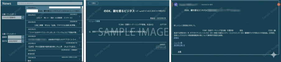 ・情報展開元の選定協力による導入の早期化 ・社内向け情報展開業務の作業効率化 ・取得したニュースのアーカイブ化 ・検索性の向上