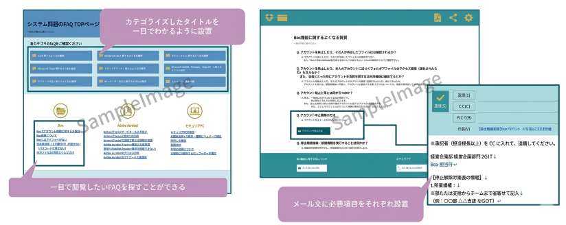 ・SharePoint製社内ポータルサイトでの問い合わせメールテンプレート共有による問い合わせ対応の一般化