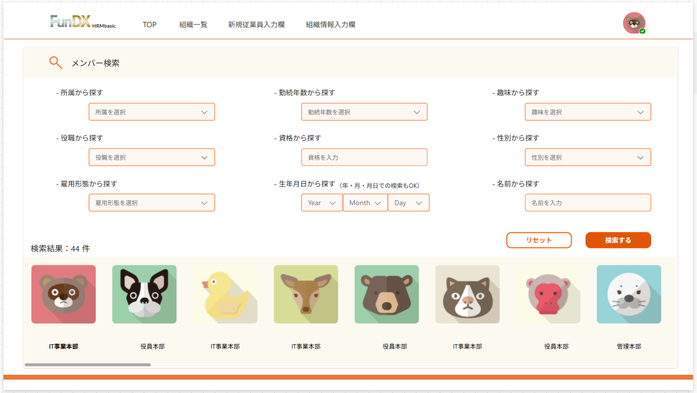 HRMBasicは、従業員の基本情報やプロフィール情報を一元管理し、社内のコミュニケーションとチームワーク向上を支援する人材情報管理サービスです。